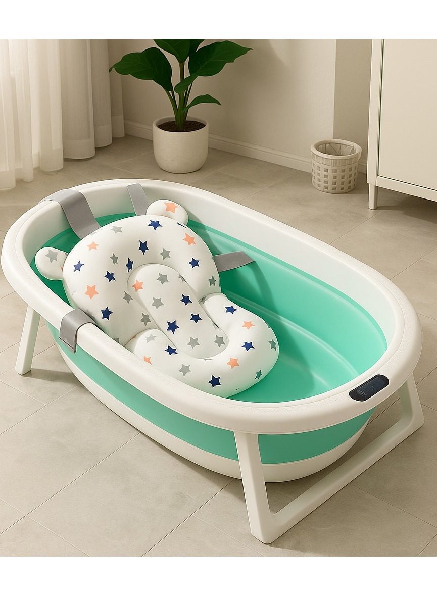 حوض استحمام سيليكون للأطفال قابل للطي مع وسادة وترمومتر – موفر للمساحة، مضاد للانزلاق، سهل التنظيف – 70×40×20 سم