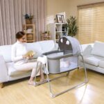 سرير أطفال دورين متنقل وهزاز مع ناموسية وطرابيزة غيار وعجل صامت – سرير جانبي للأم وقابل للطي Up650x) black )