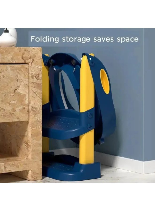 سلم تدريب المرحاض للأطفال (أزرق/أصفر) – مقعد بوتي مريح وقابل للطي مع درجات قابلة للتعديل