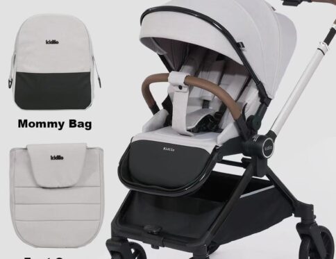 عربية أطفال كيديلو D900 - كرسي قابل للعكس، طي مدمج، عربية أطفال مع غطاء للمطر وشنطة للأم وغطاء للقدم