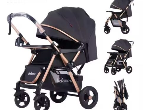 عربة أطفال Belecoo قابلة للطي باتجاهين - مقبض قابل للعكس، هيكل مرتفع و3 أوضاع إمالة قابلة للتعديل