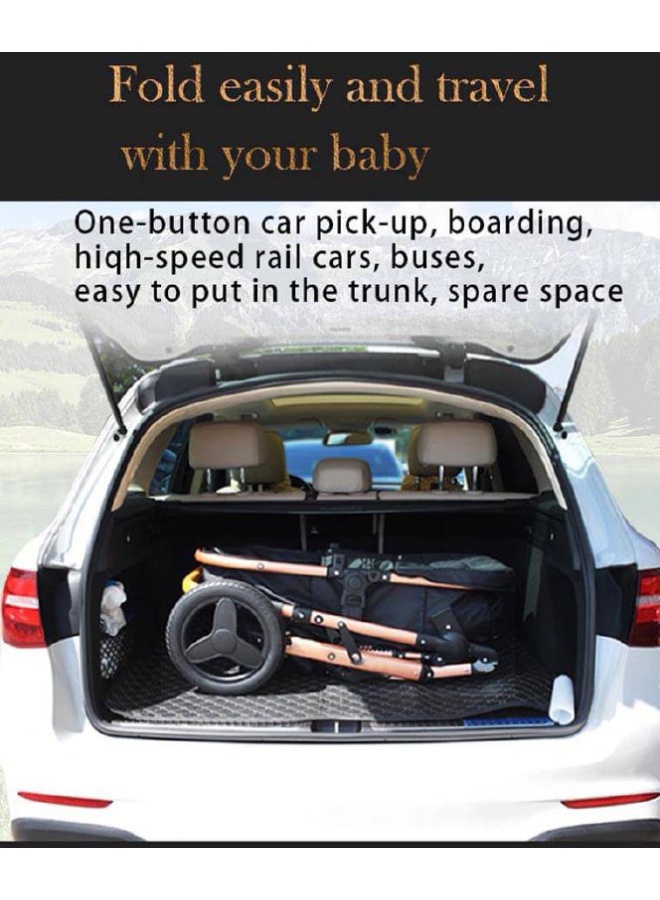 عربة أطفال قابلة للطي بسهولة بقاعدة عريضة سهل الطي والحمل ، مساحة تخزين كبيرة أسفل العربة ، نافذة علوية لرؤية الطفل ، جيب خلفي للتخزين ، فواصل العجلات الأمامية والخلفية