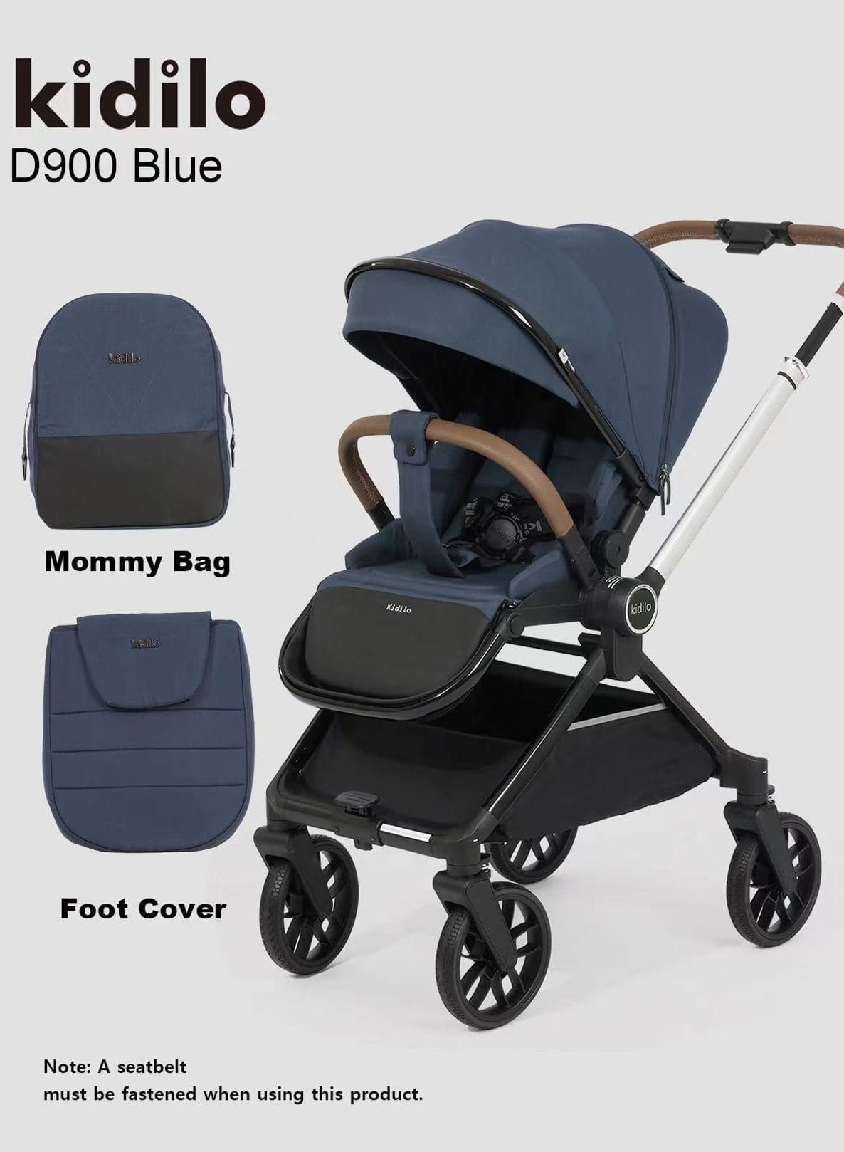 عربية أطفال كيديلو D900 – كرسي قابل للعكس، طي مدمج، عربية أطفال مع غطاء للمطر وشنطة للأم وغطاء للقدم