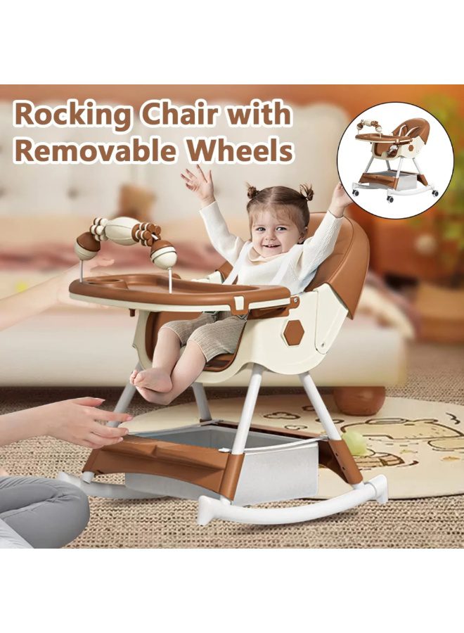 كرسي طعام أطفال 3 في 1 متعدد الوظائف | يتحول لكرسي هزاز وطاولة لعب وتركيب مكعبات | نظام جلوس متكامل للرضع والأطفال الصغار