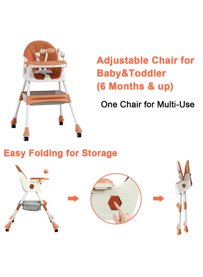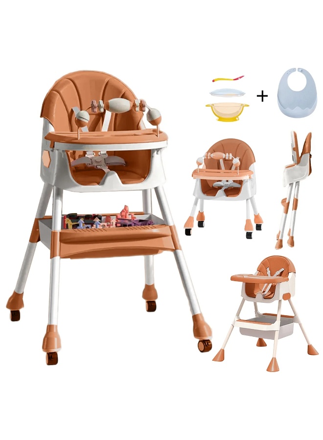 كرسى طعام 5 مستويات وقابل للطى والظهر مستويات لتسليه الطفل كود (8122)