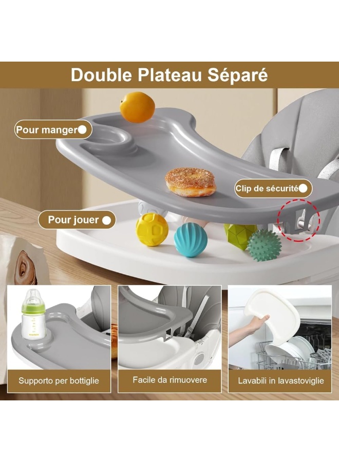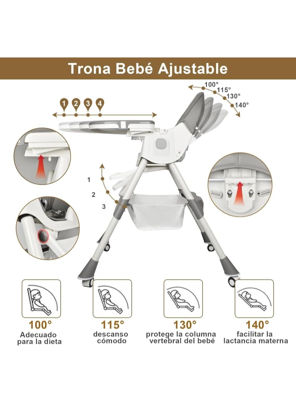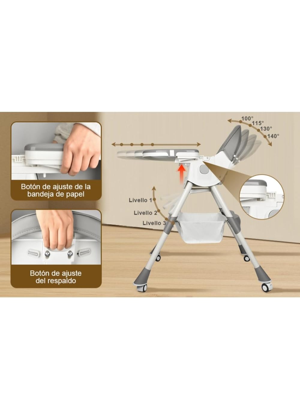 كرسي مرتفع للأطفال قابل للطي وكرسي هزاز 2 في 1 من Burbay – كرسي متكئ قابل للتعديل مع عجلات 360 درجة (DM114)