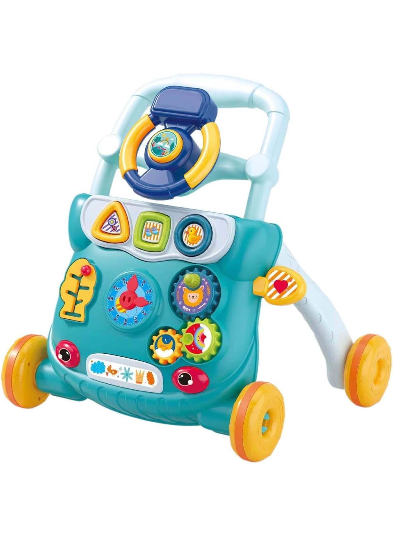 – 【متعددة الوظائف】لعبة المشي متعددة الوظائف مع عجلة قيادة تساعد طفلك على تحسين تنسيق حركة اليد والعين أثناء اللعب.
