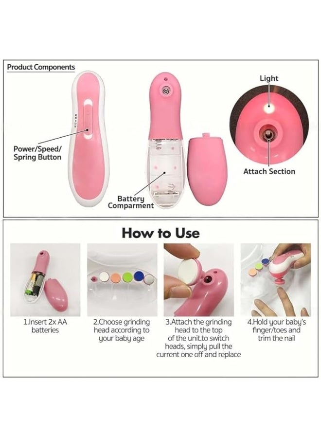 مبرد أظافر كهربائي للأطفال 6 في 1 - للعناية اللطيفة بأظافر الرضع والأطفال الصغار مع ضوء مدمج