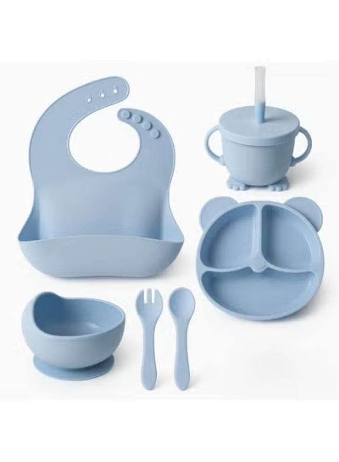 مجموعة ادوات تغذية الاطفال من السيليكون، لوازم الفطام، تتضمن اكواب شفط واطباق مقسمة ومريلة قابلة للتعديل وادوات اطفال وملاعق وشوك وكوب