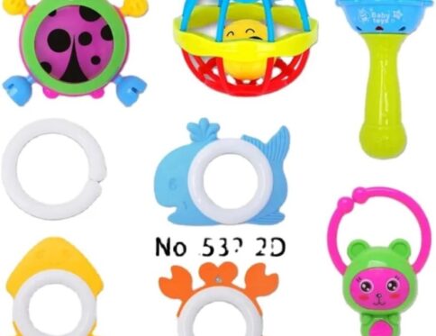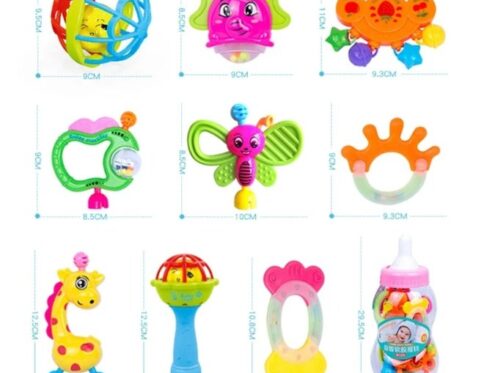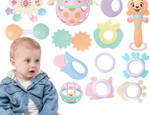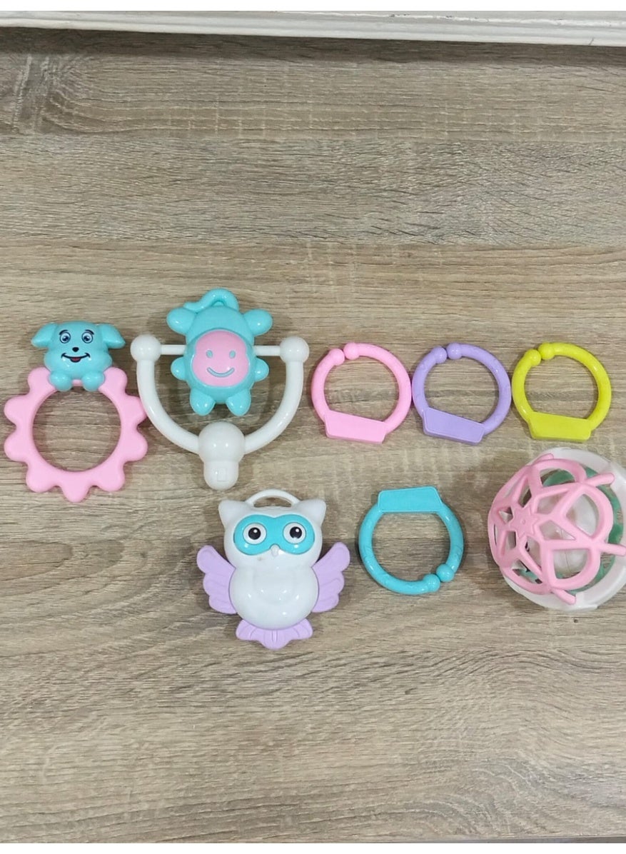 مجموعة خشخيشات وعضاضات الأطفال المتكاملة (8 قطع) – ألعاب تسنين وتعليم مبكر للرضع (1-12 شهرًا)
