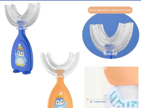 فرشاة أسنان الأطفال على شكل حرف U - سيليكون ناعم، تنظيف شامل 360 درجة، للأعمار 2-6 سنوات