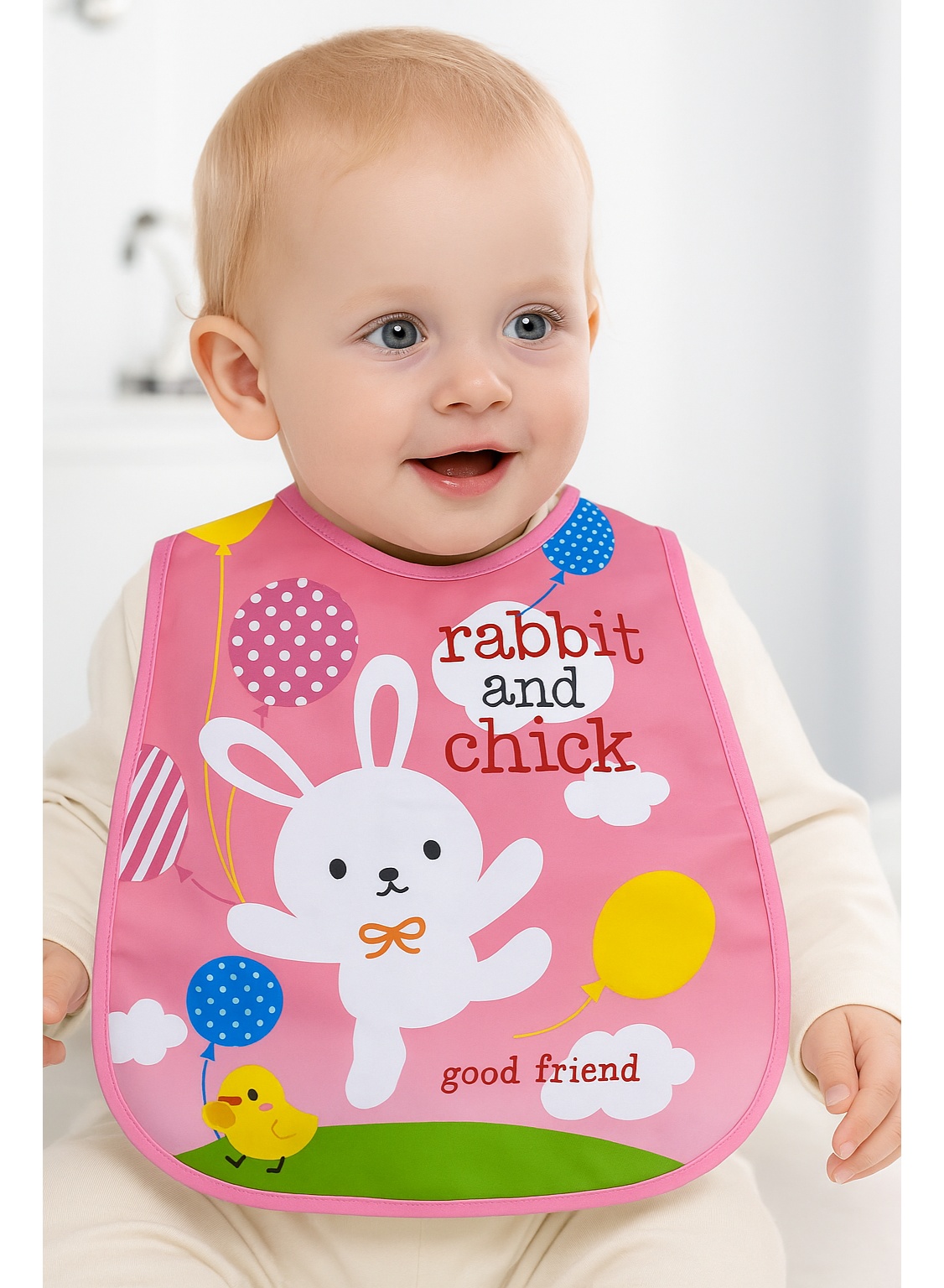 مريلة أطفال ضد الماء بتصميم الأرنب ونضارة القلب
