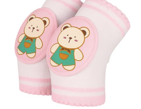 واقيات ركبة للأطفال بتصميم دب لطيف - وردي وللحماية وقت الزحف
