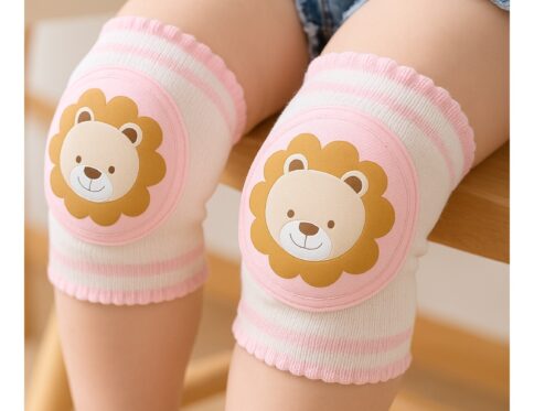 واقيات ركبة للأطفال بتصميم أسد لطيف - وردي وللحماية وقت الزحف