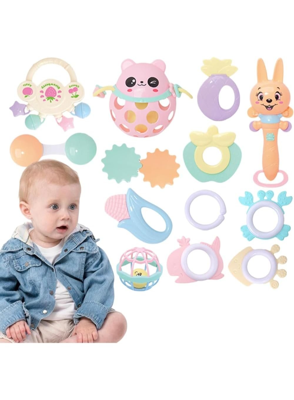 خشخيشات وعضاضات للرضع ألعاب التسنين للأطفال من عمر 1 إلى 12 شهرًا،ألعاب تعليمية مبكرة للأطفال حديثي الولادة ،لعبة عضاضة للأطفال (8قطع) كود