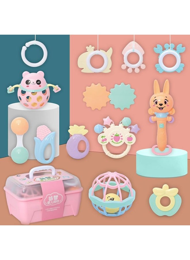 مجموعة خشخيشات وعضاضات السيليكون الفاخرة للأطفال (13 قطعة) - ألعاب تسنين وتعليم مبكر للرضع (2-12 شهرًا)