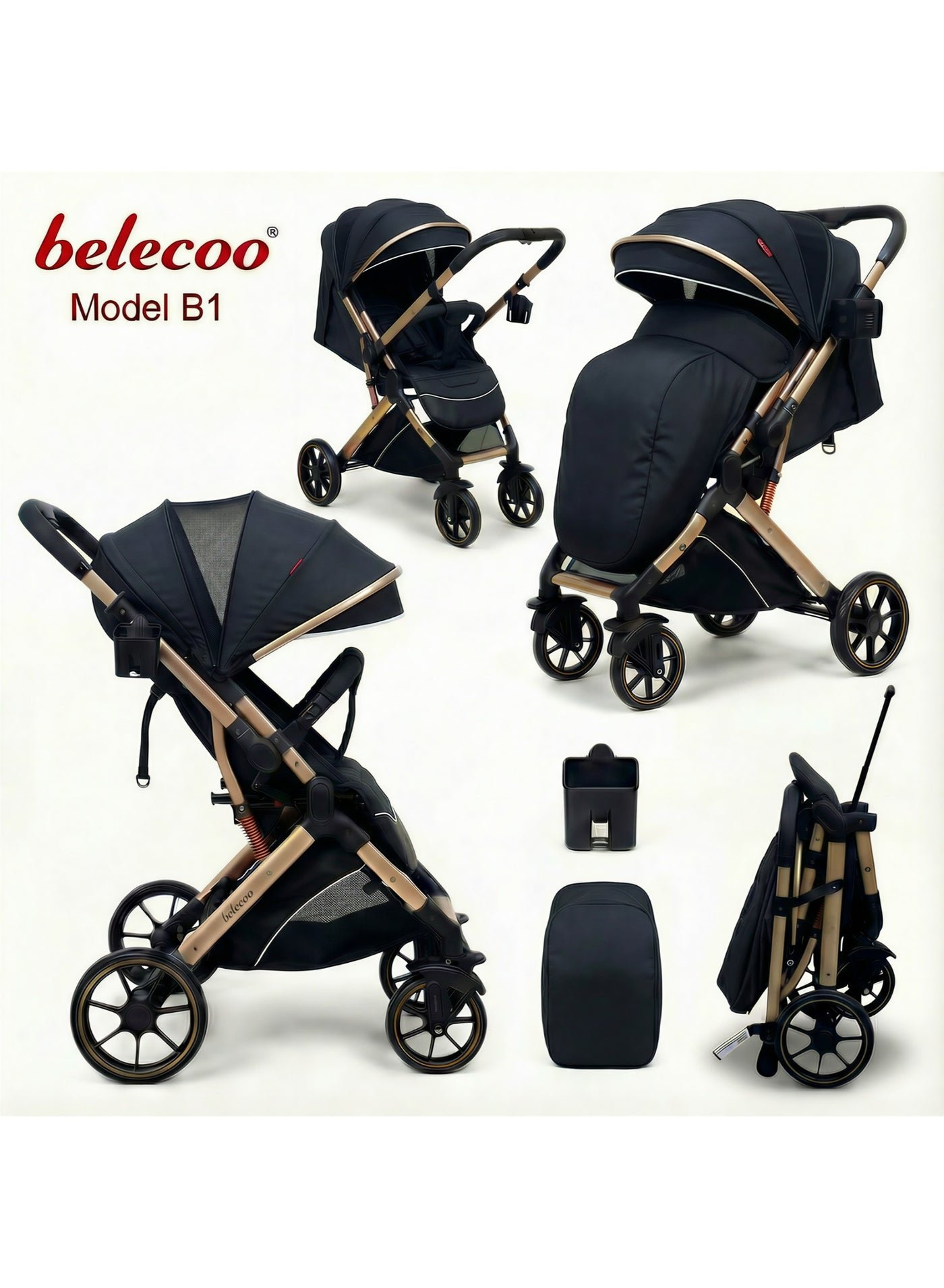 عربة أطفال Belecoo عالية الجودة - قابلة للطي بيد واحدة، مع مساحة تخزين كبيرة ونافذة لمراقبة الطفل