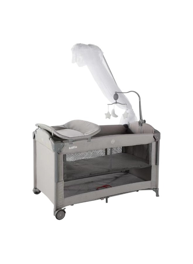 سرير أطفال محمول ومتعدد الاستخدامات 5 في 1 | سرير سفر مع طاولة تغيير وحامل ألعاب (KDD11)-light gray