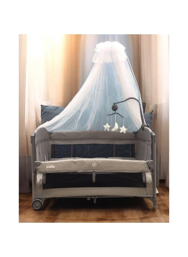 سرير اطفالKidilo متعدد الوظائف مستويين نوم، فتحة جانبية،طاولة غيار،هزاز،نموسية كبيرا جدا،العاب معلقة وموسيقي ،خزان لاغراض البيبي مرتبة.